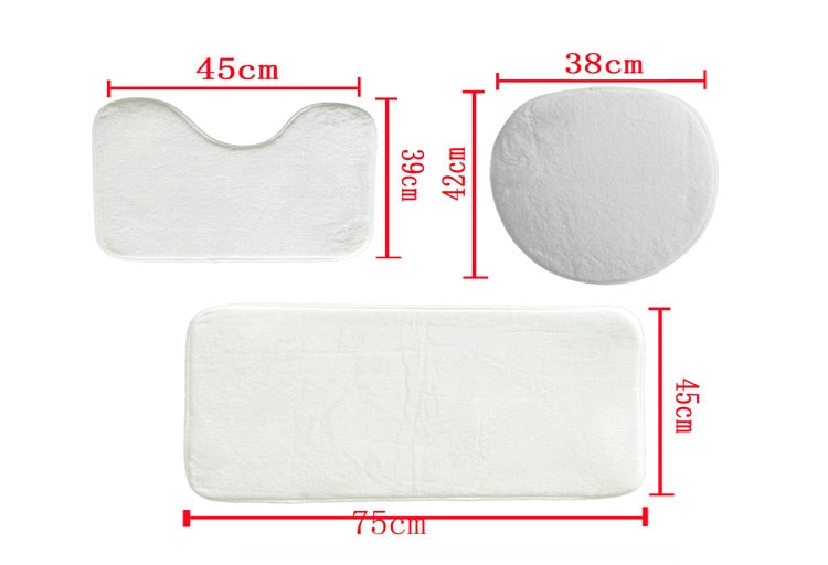 2) Size of curtain:W90xH180cm,W120xH180cm,W150xH180cm, W165xH180cm,W180xH180cm, W180xH200cm,4pcs set(1pcs Bath Curtain + 1pcs Toilet cover + 1pcs U-shaped mat + 1pcs Carpet)