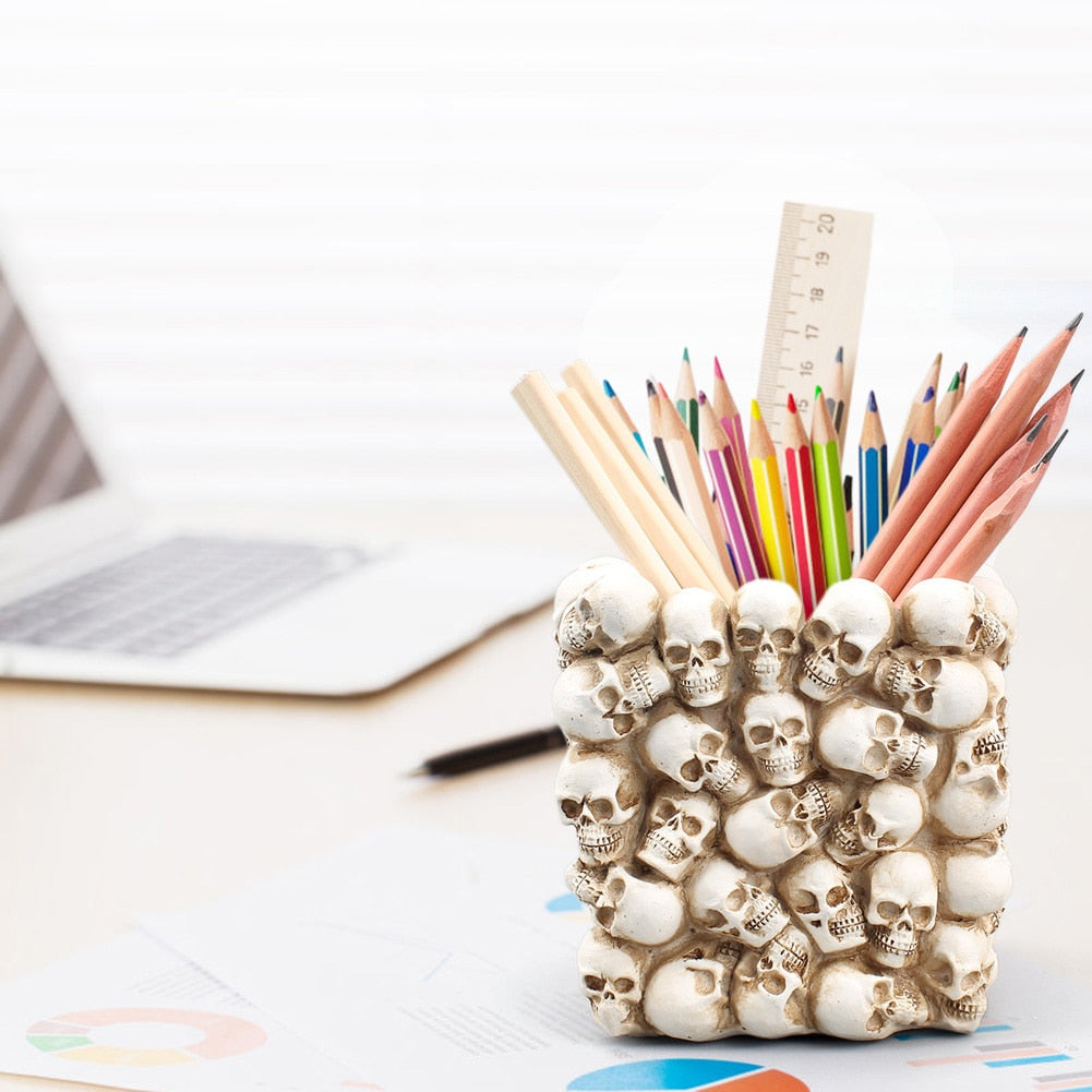 3D Skull Head Storage Box Makeup Pen Holder Stationery Container