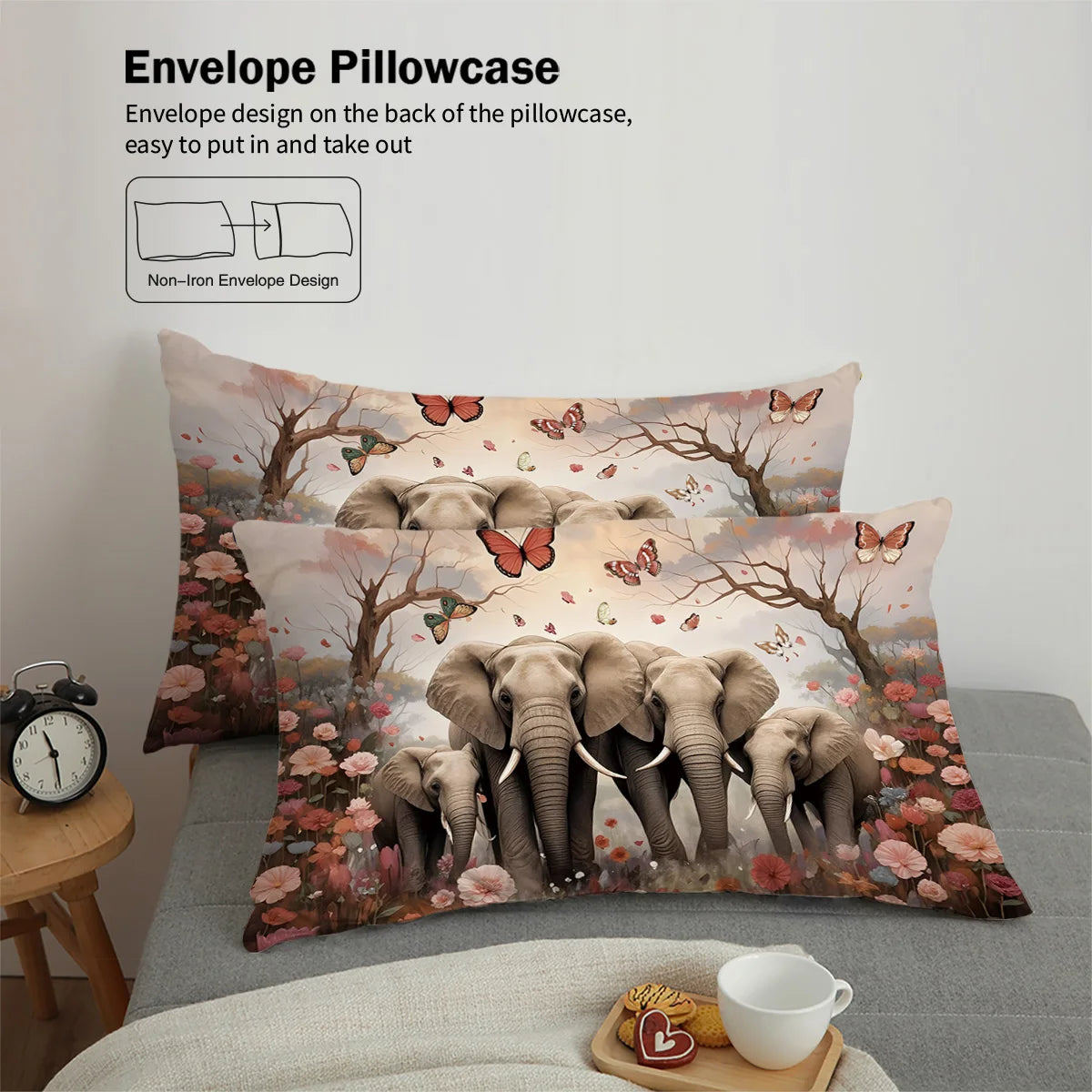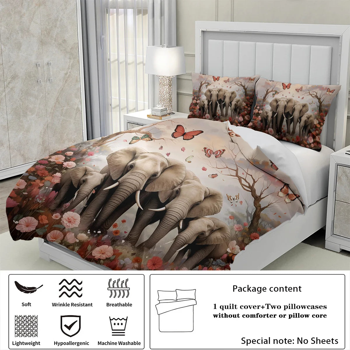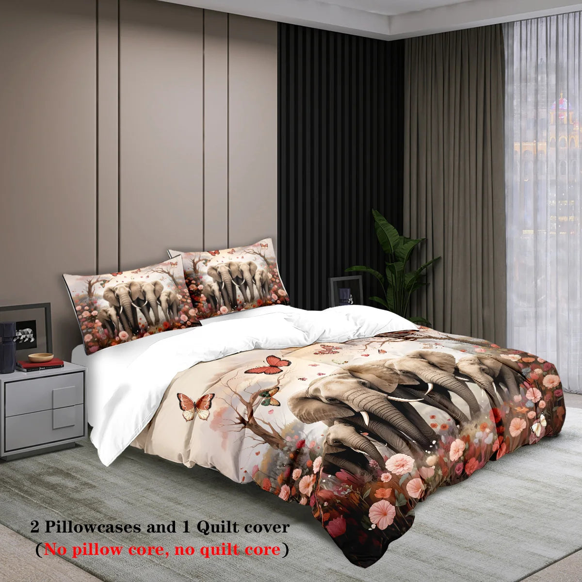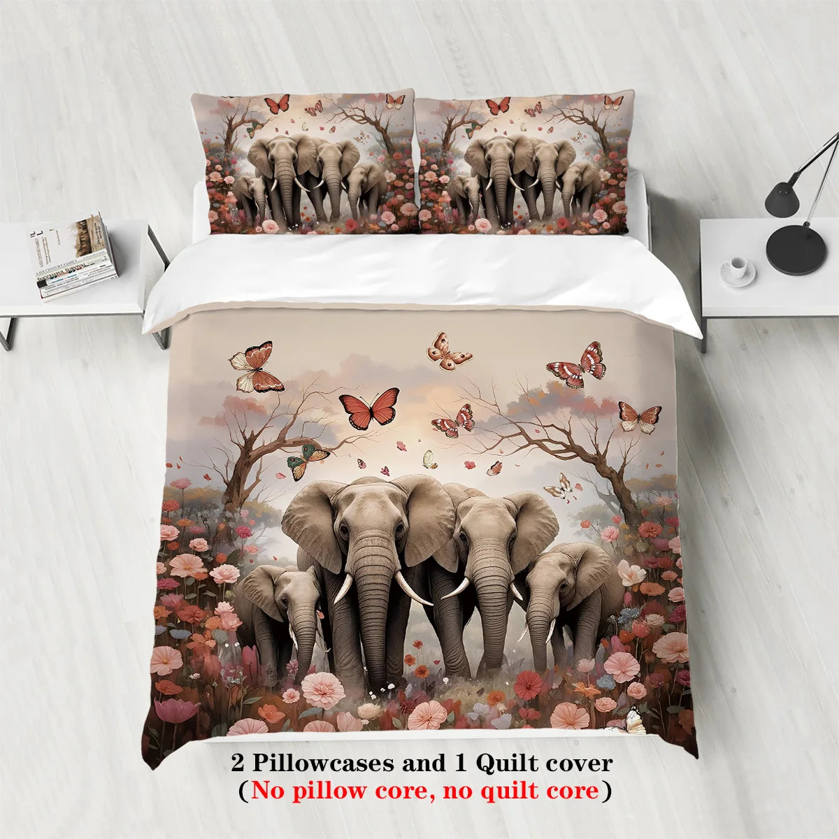 Elephant Family Pattern Bedding Set 3 Pieces