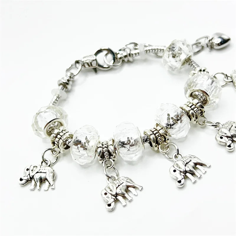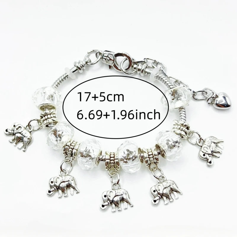 Elephant Shape Pendant Chain Bracelet Silver Alloy