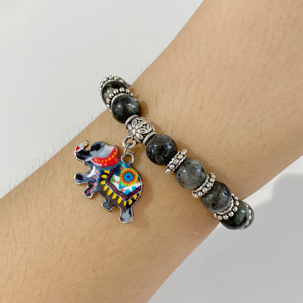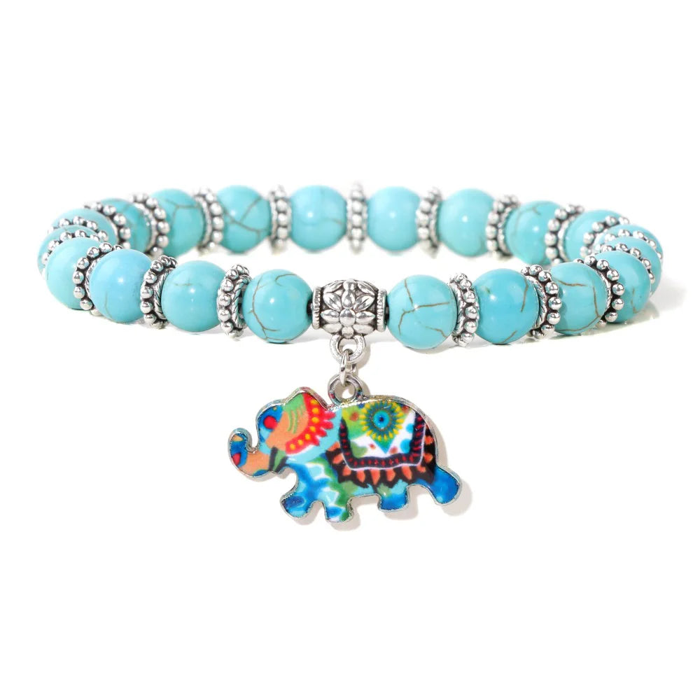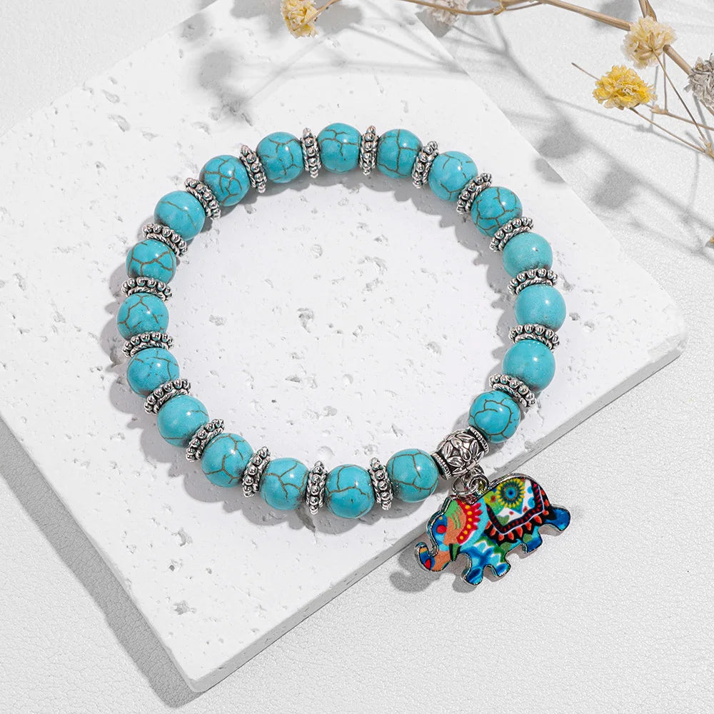 Elephant Pendant Bracelets Stone Turquoise Beaded
