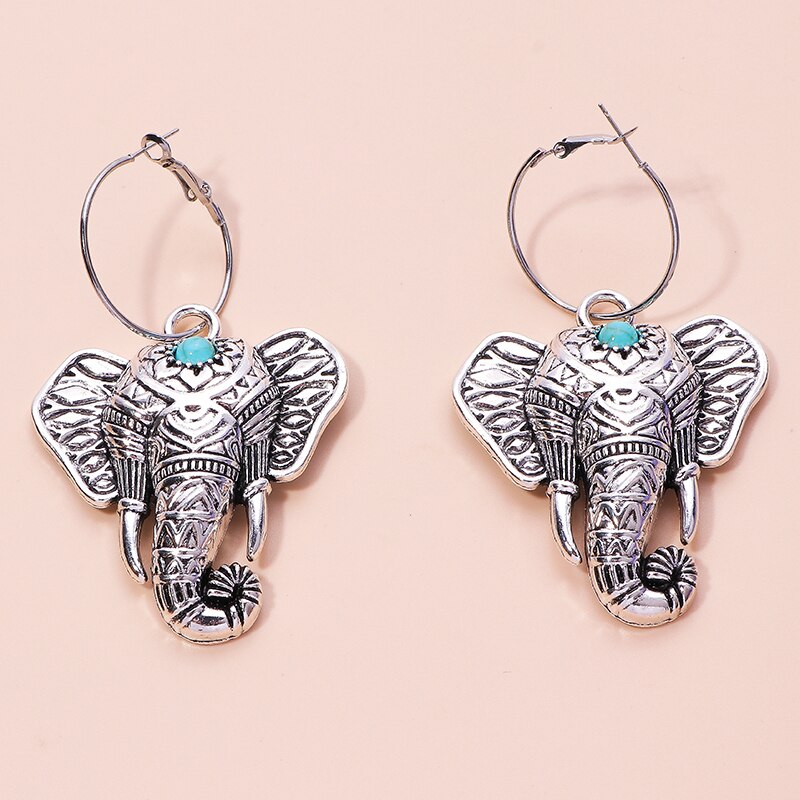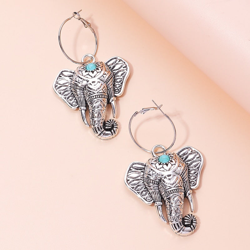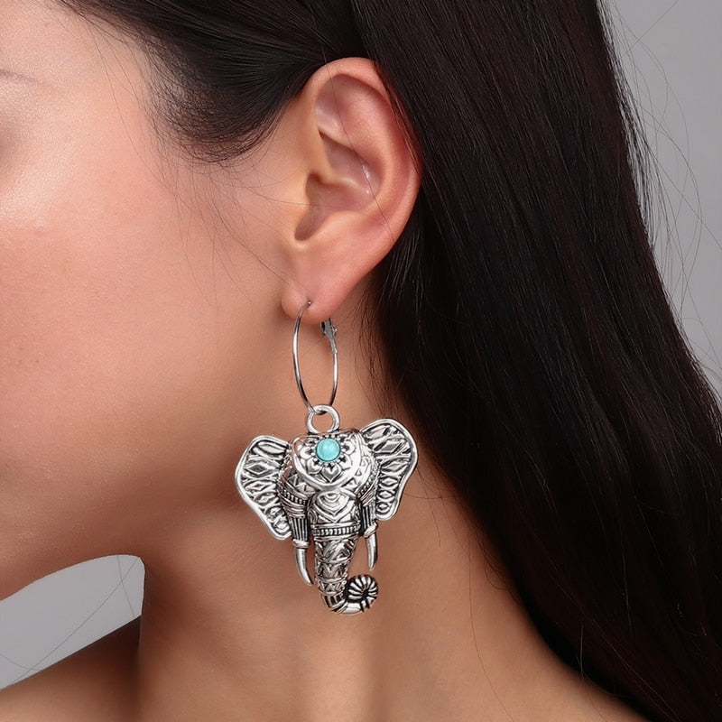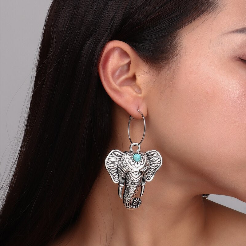 Vintage Bohemia Big Elephant Dangle Earrings