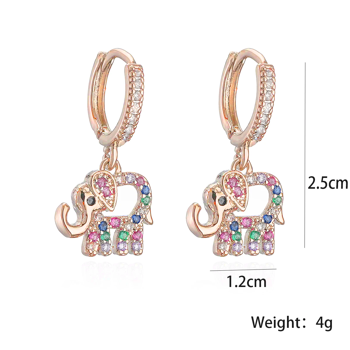 Elephant Drop Earrings Colorful Zirconia Earrings