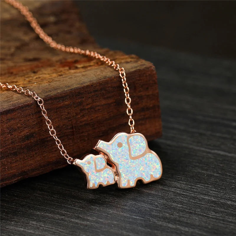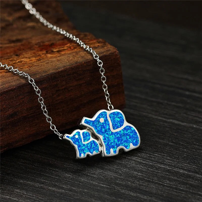 Elephant Mom and Elephant Baby Pendant Necklace