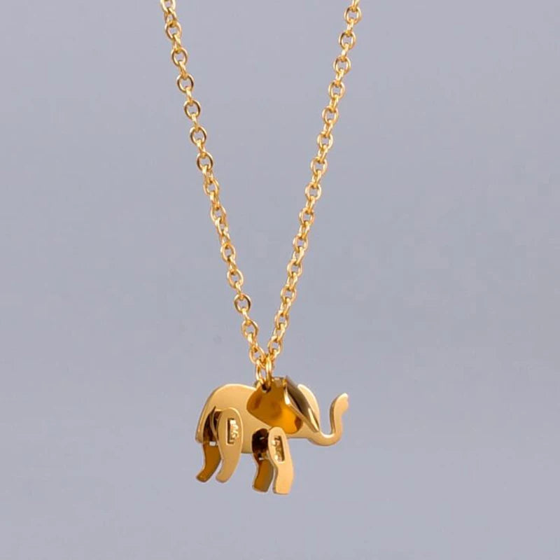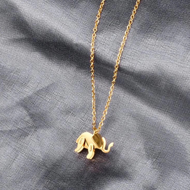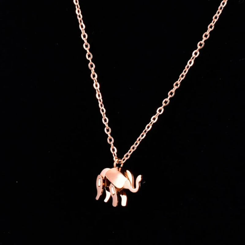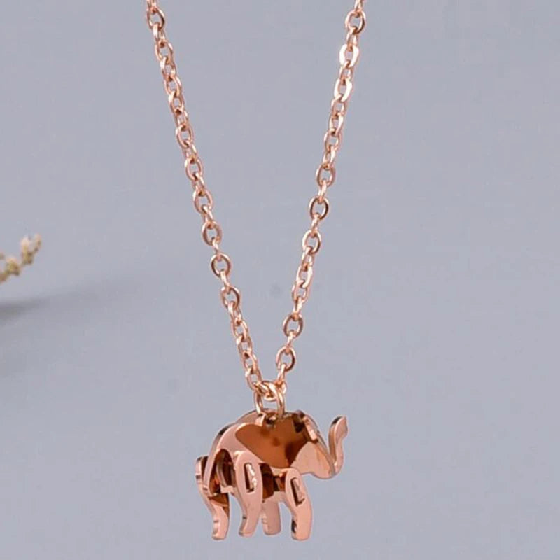 Elephant Pendant Necklace Rose Gold Color Titanium Steel