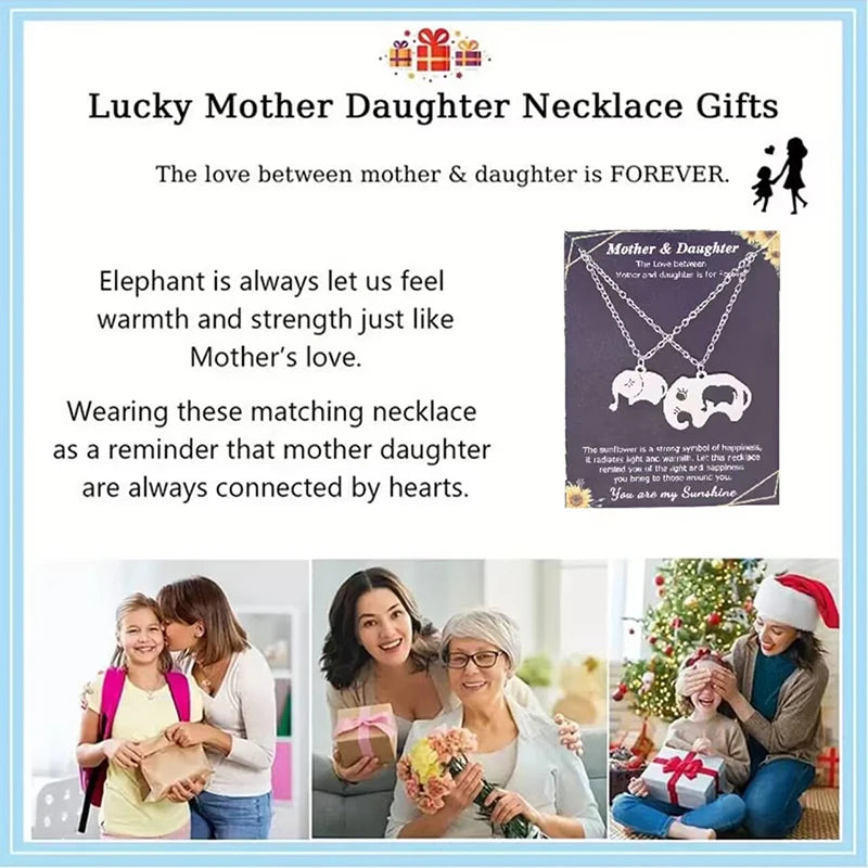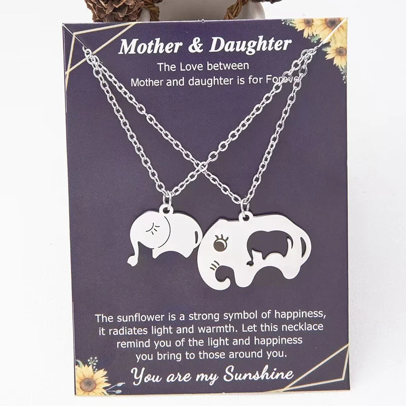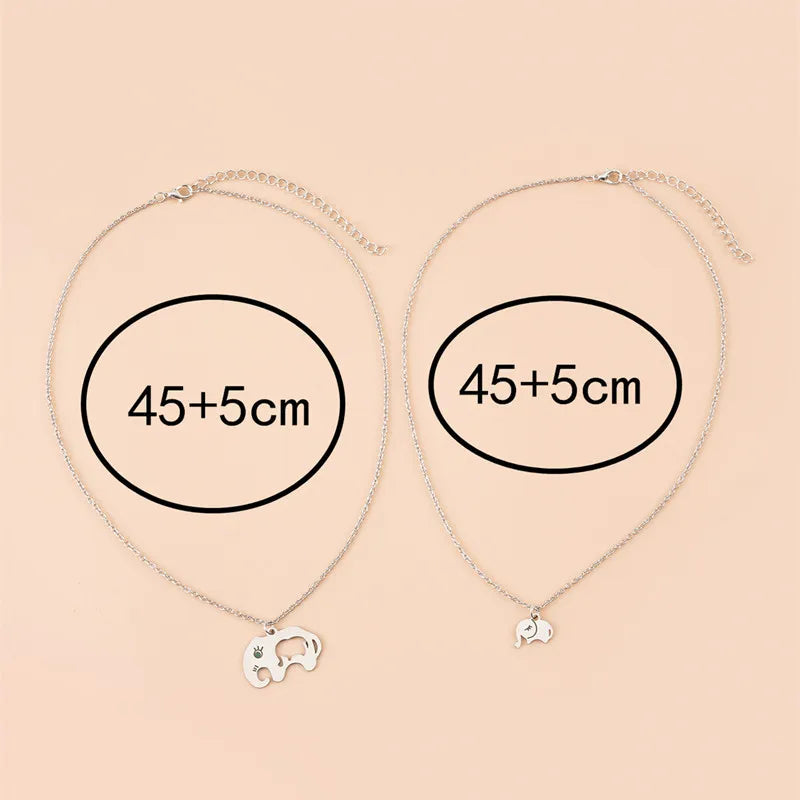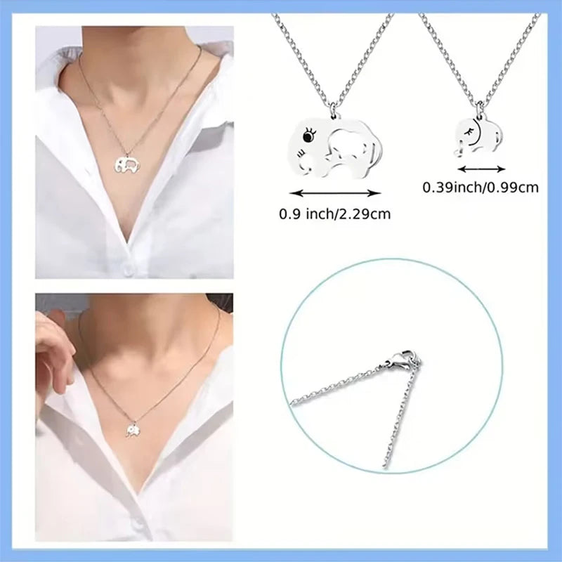 Elephant Mother Daughter Pendant Necklace Stainless Steel 2 Items/Set