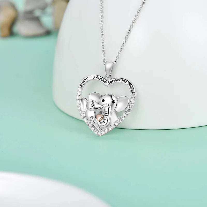 Elephant Mother and Baby Elephant Necklaces Letters Engraved