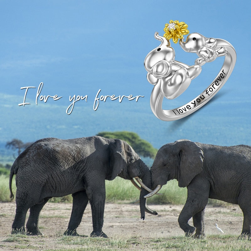 Elephant Ring Mother and Child Holding Sunflowers Family Love