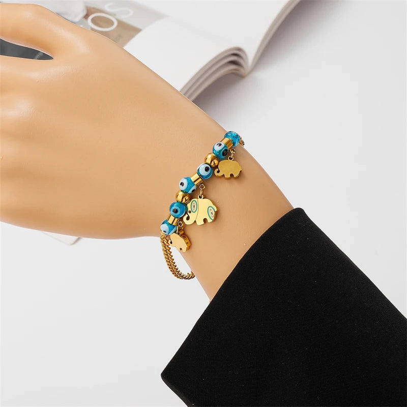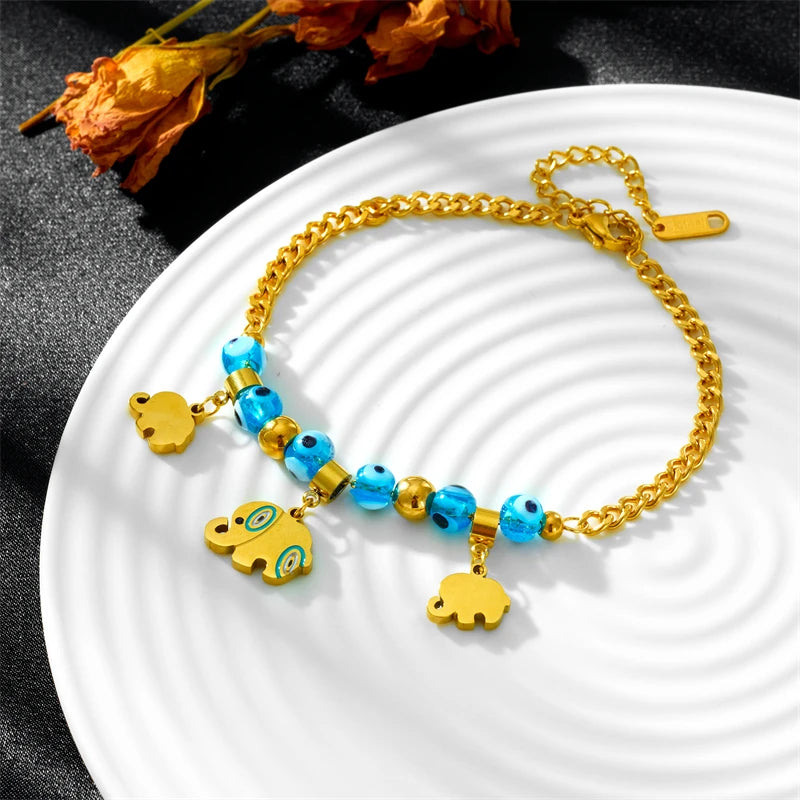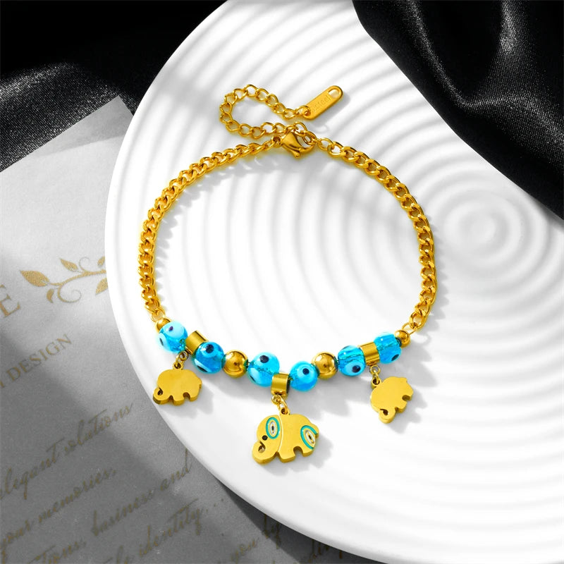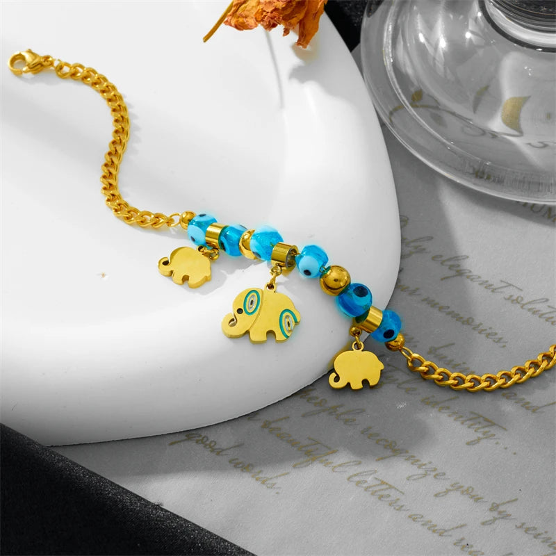 Elephants Charm Thick Chain Bracelet Stainless Steel