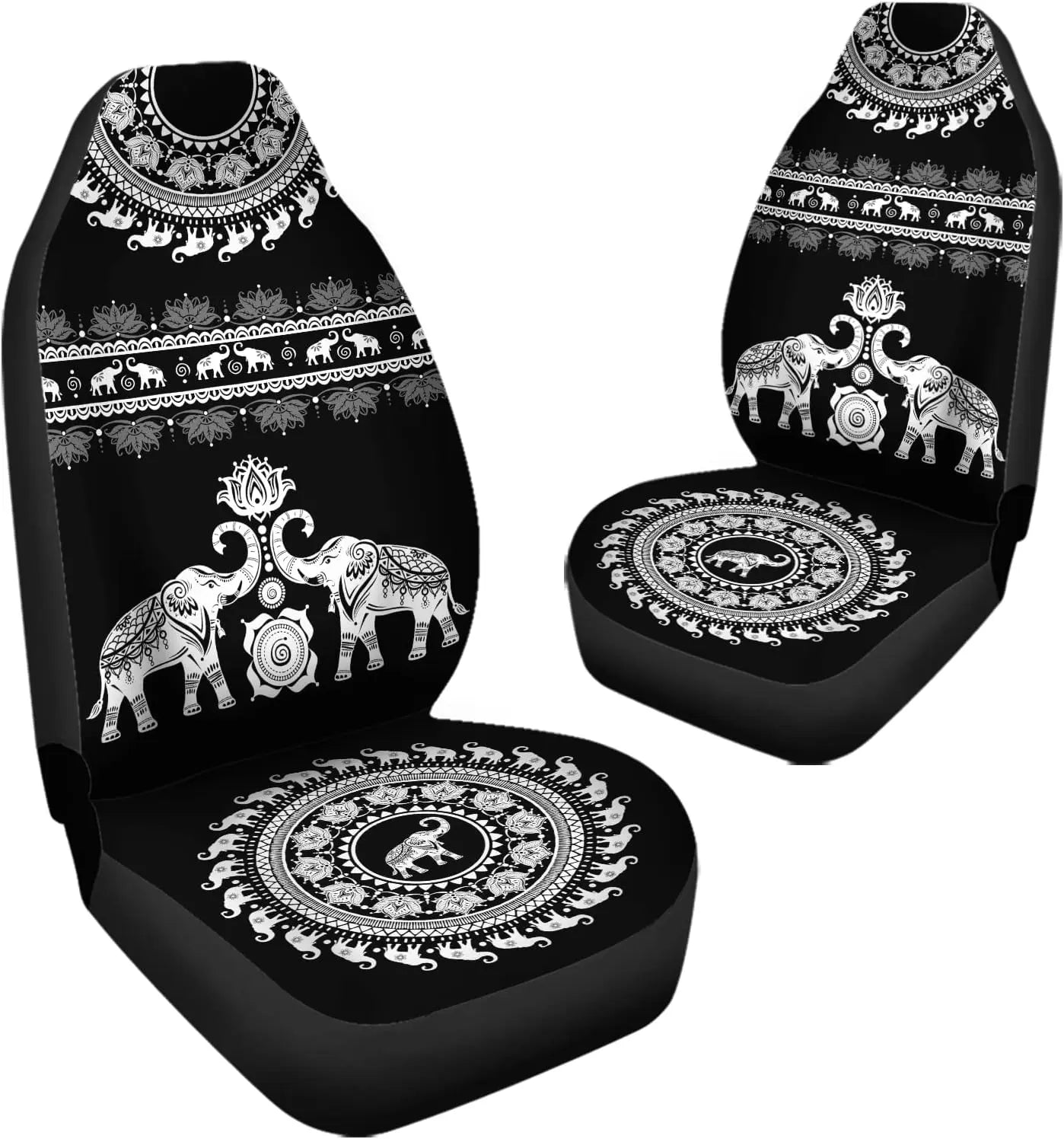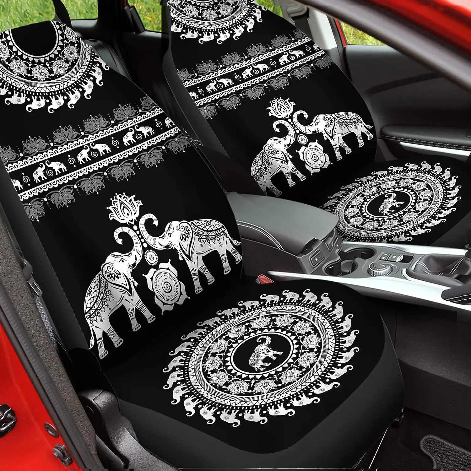Elephant Flowers Pattern Seat Cover Full Set 2 Pack Car Accessories