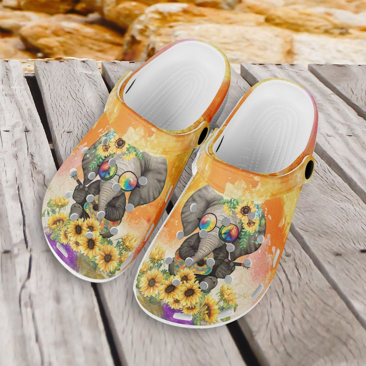 Sunflower Elephant Print Non-Slip Shoes Breathable