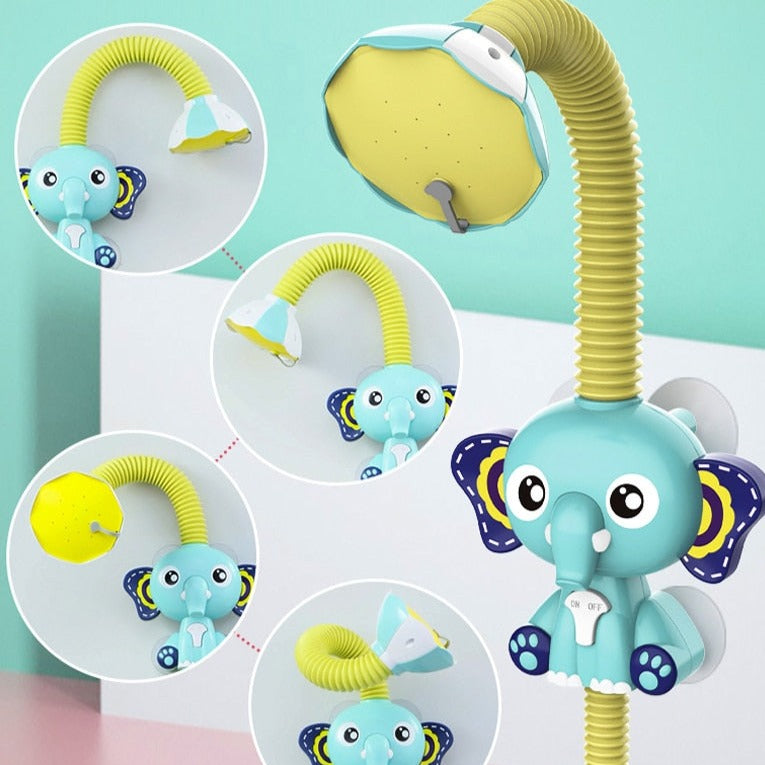 Tap the little elephant's belly and water will start spraying from the top of the water spray. Suction cups should only be used on smooth surfaces!