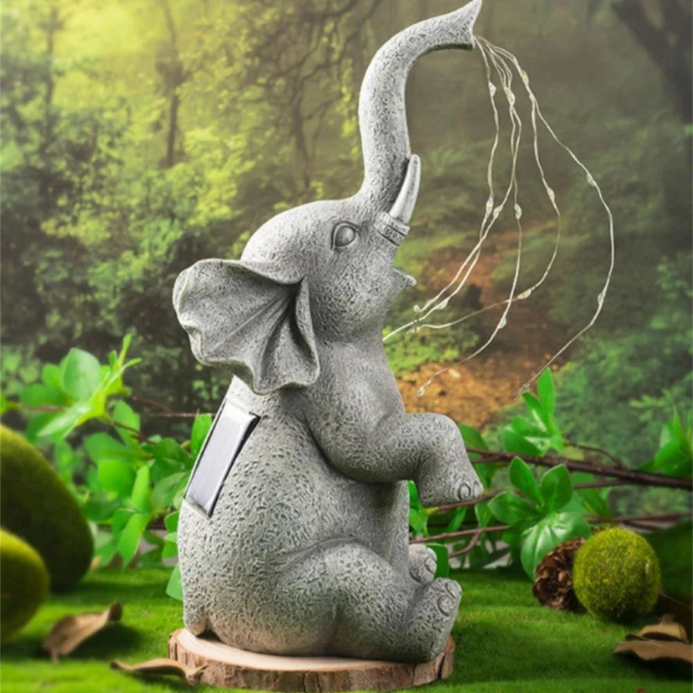 Elephant Statues String Solar Lights for Garden Decor Outdoor
