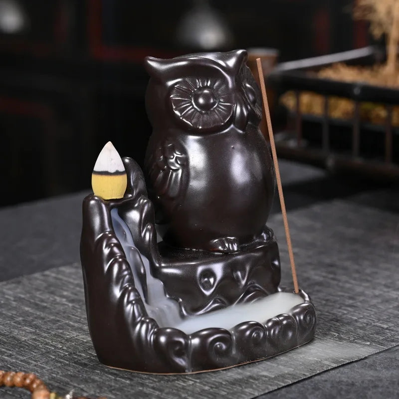Owl Ceramic Waterfall Backflow Incense Burner Incense Stick Holder