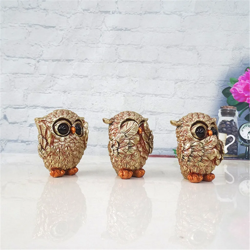 3 Owl Figurines See No Evil Hear No Evil Speak No Evil