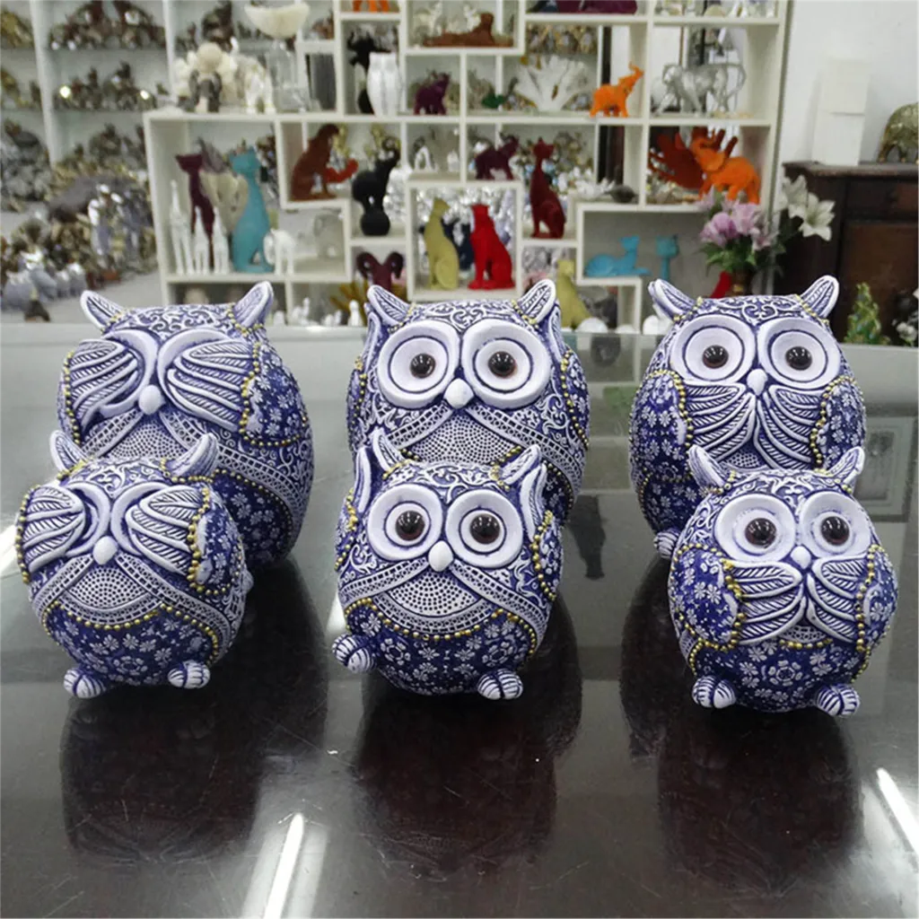 Blue Single Owl Figurine Decor Size: 7.5×7.5×8.5cm(3×3×3.3in)