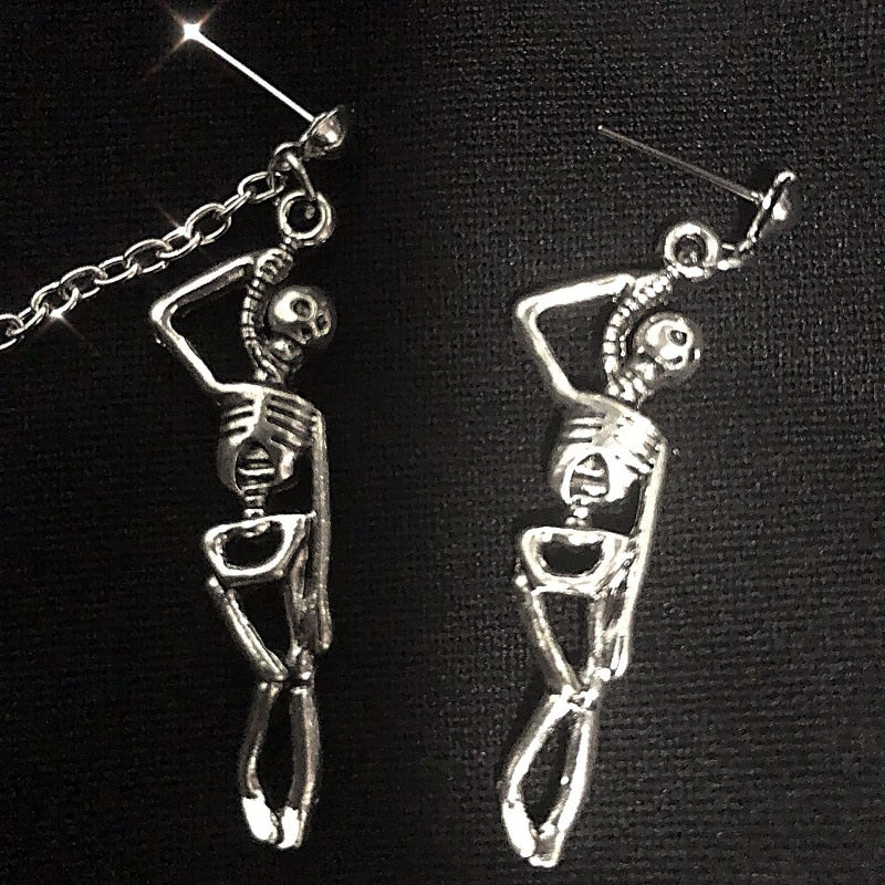 Skull Skeleton Double Piercing 2 Holes Chain Earrings