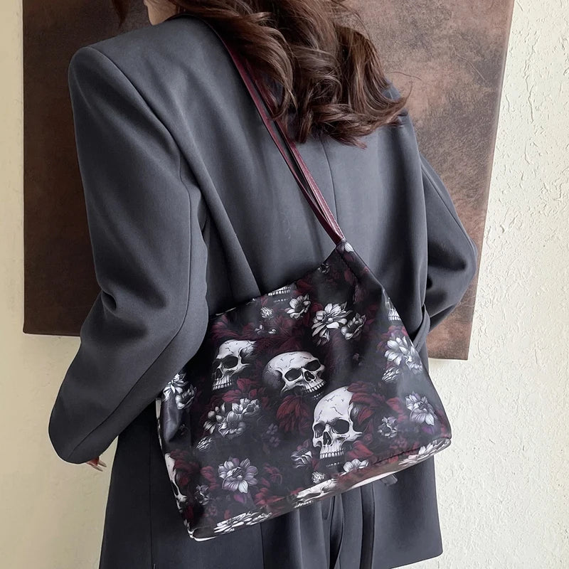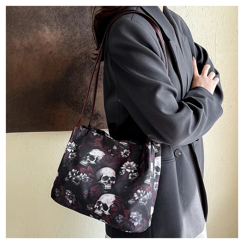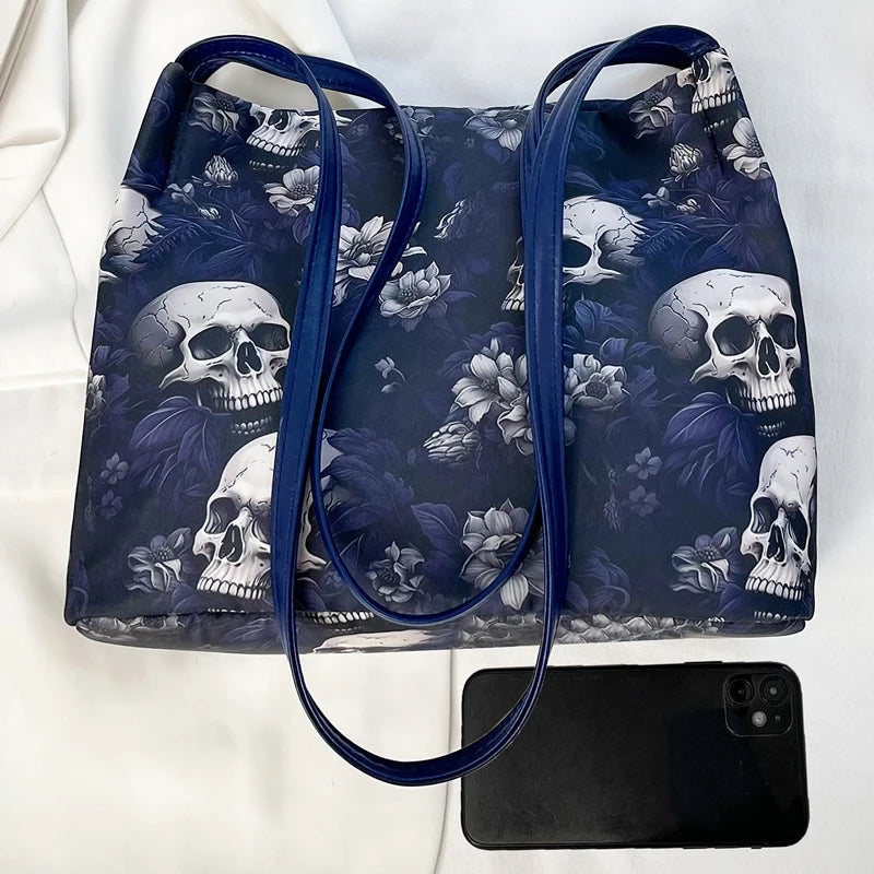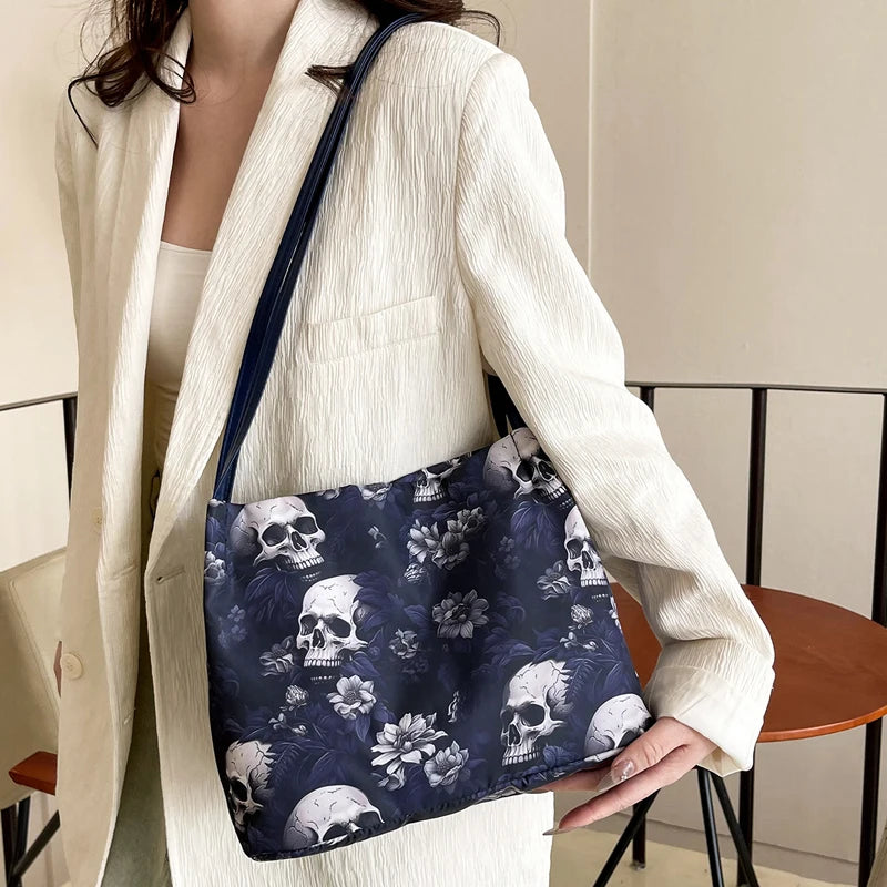 Skull Printed Tote Bags Versatile Shoulder Bags