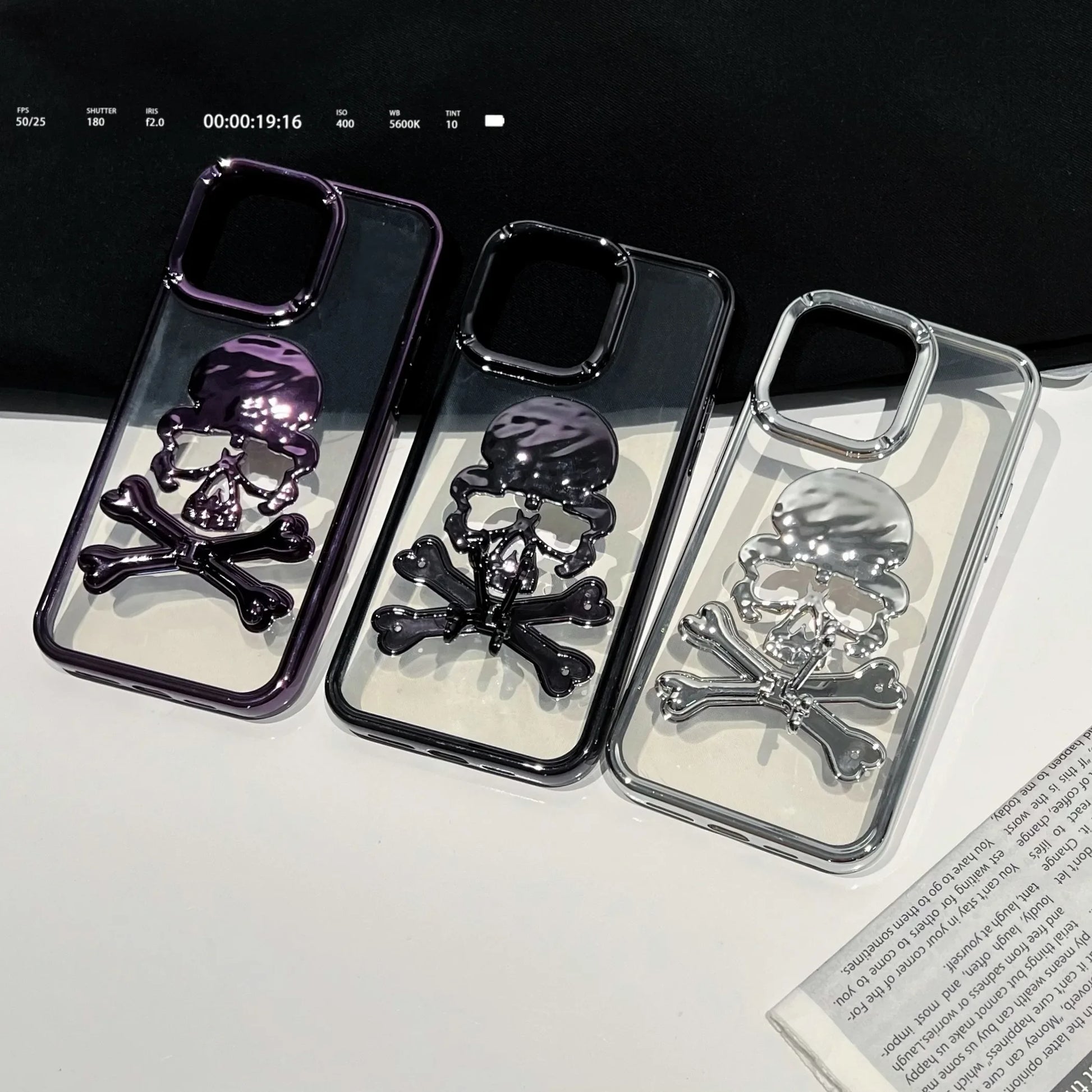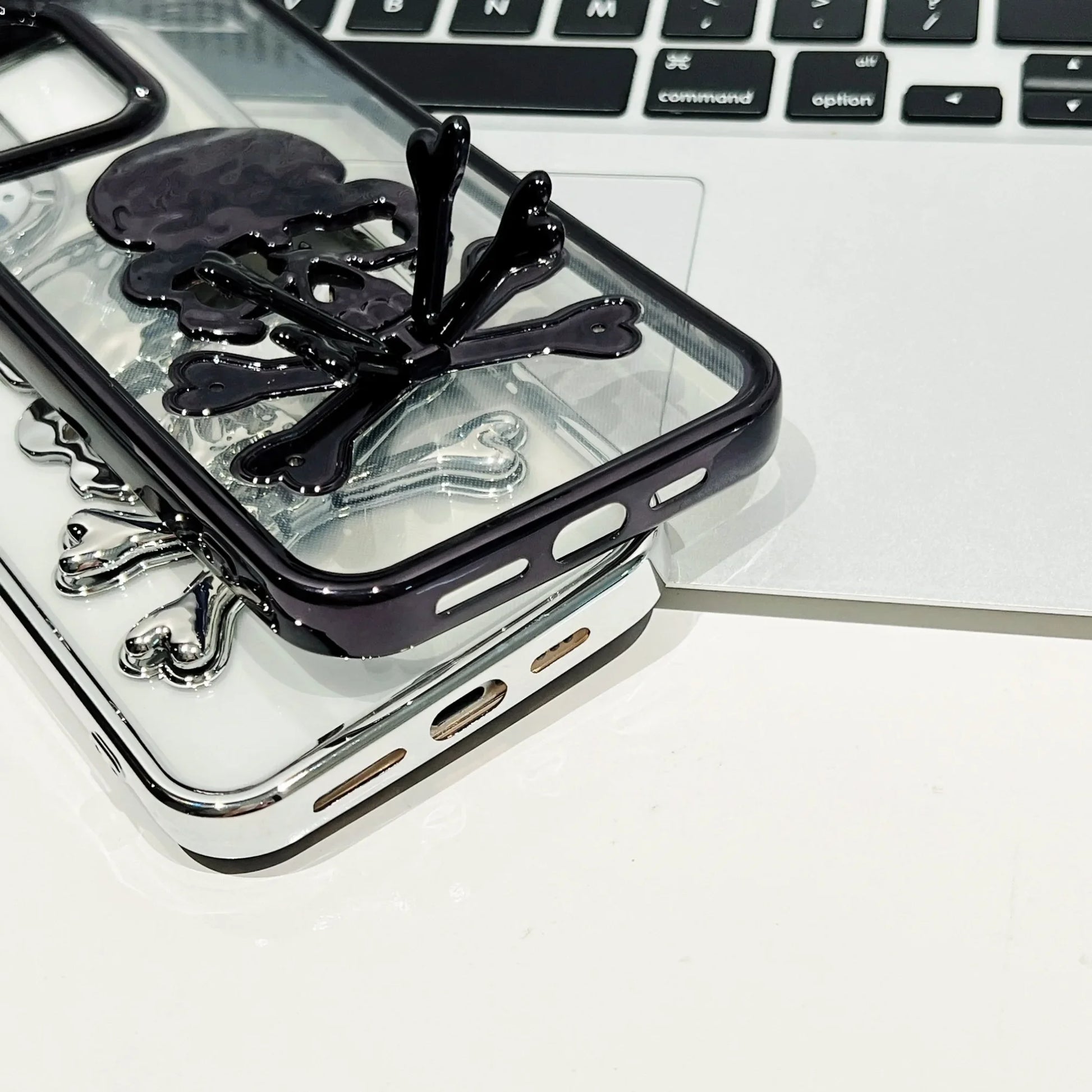 Skull Head Fold Bracket Cover Funds Plating Soft Transparent Phone Case