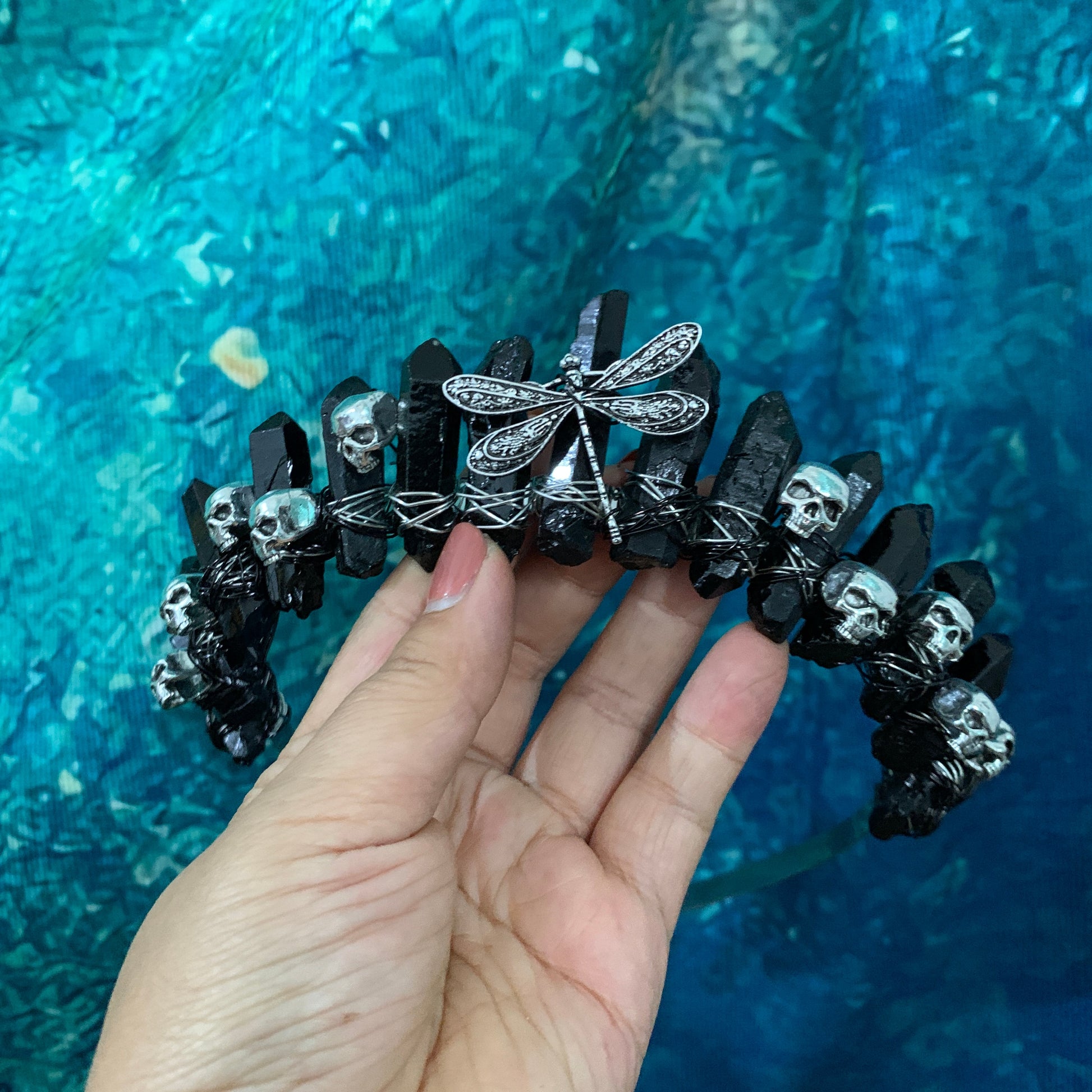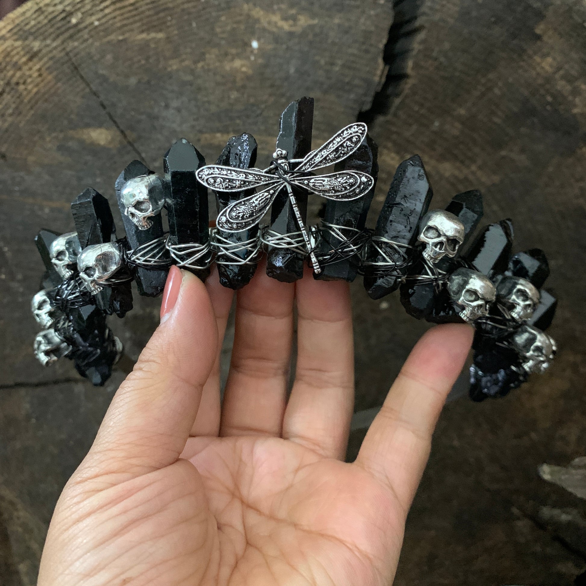 Skull Crown Dragonfly Crystal Headband
