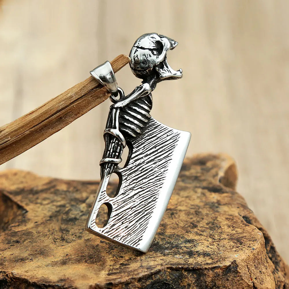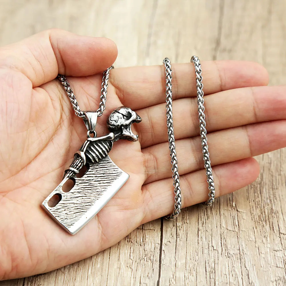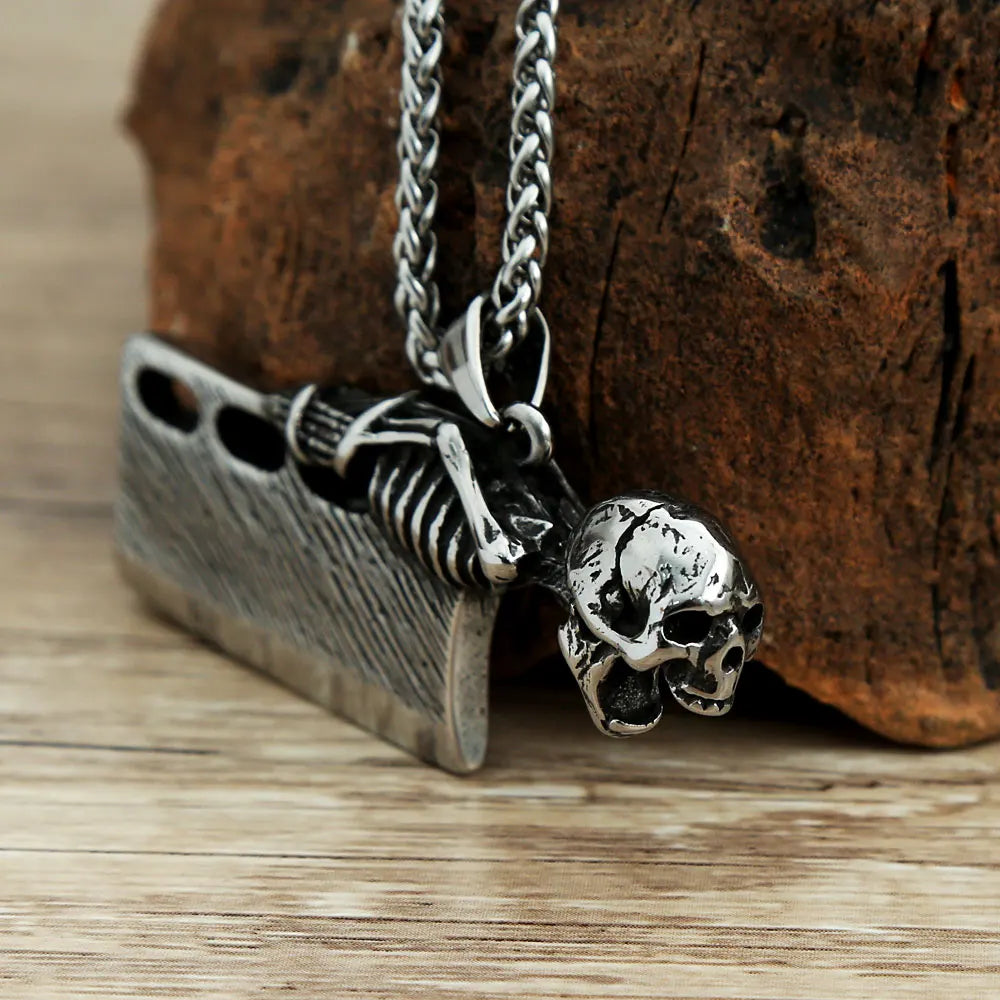 Skull Knife Bottle Opener Pendant Necklace Stainless Steel