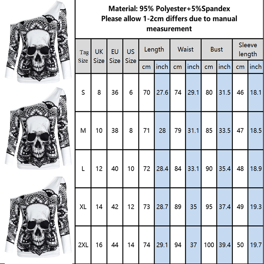 Skull Off Shoulder Two Piece Sets Long Sleeve
