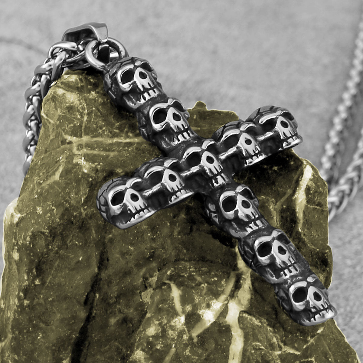 Skull Cross Necklace Gothic Stainless Steel Pendant