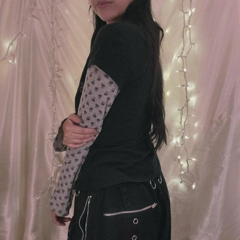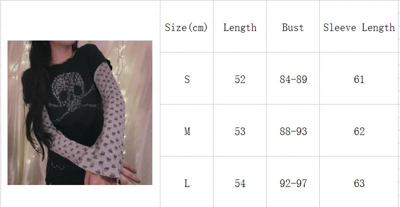 Skulls Print T Shirt Patchwork Long Sleeve Sweater