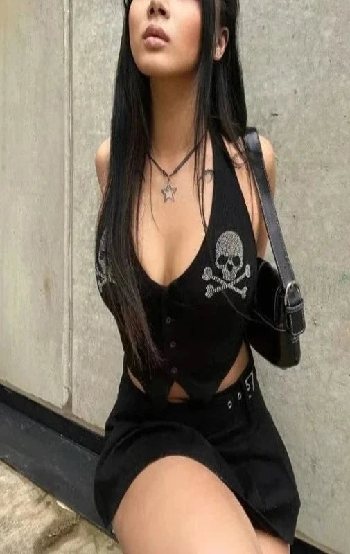 Skull Rhinestone Camisole Halter Tops