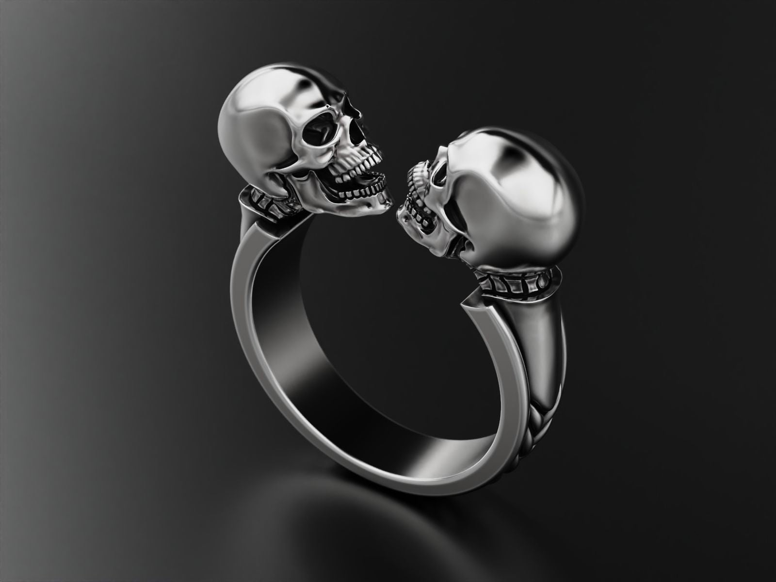 Vintage Antique Silver Twin Skull Ring