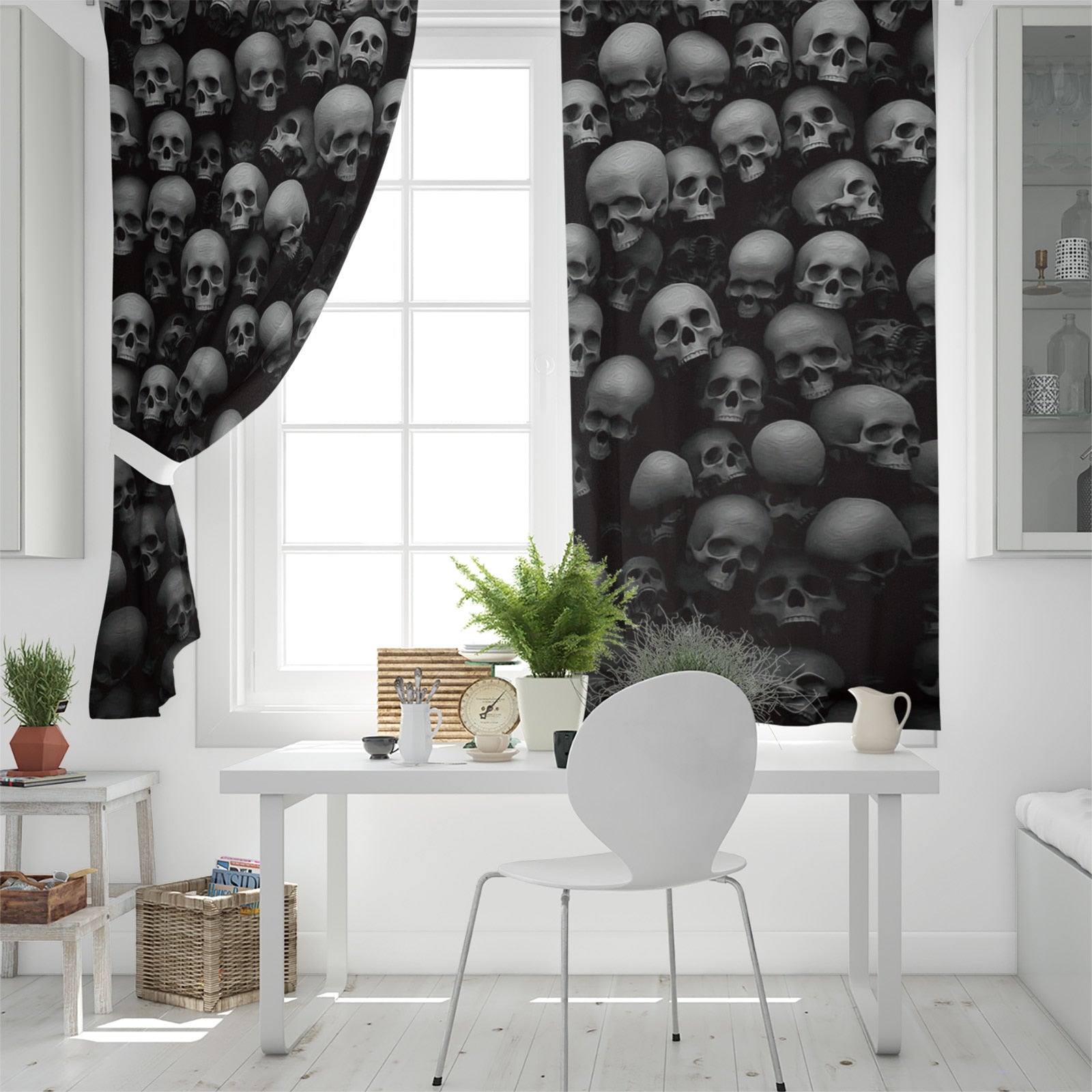 Skull Wall Skull Horror Window Curtains Living Room Bedroom Kitchen Curtain